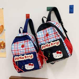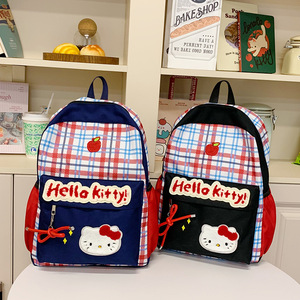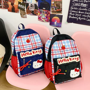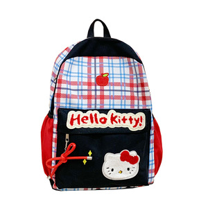 アメリカのレトロな格子のリュックサックの女子大学生の大衆のかわいい漫画の猫のリュックサックの大容量の軽いかばん