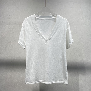 小衆2025春夏新作vネックゆったりフィット感半袖綿質清新軽薄tシャツ上着女
