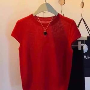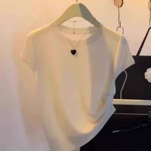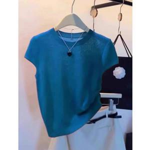 フレンチブルーアイスシルクスモールフライングスリーブニット半袖シャツ女性用夏デザインニッチスリムフィットショートトップ薄手