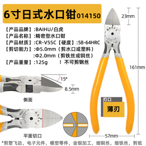 6寸日式水口钳【适合铜线铝线铁线塑料扎带】【剪切钢丝】