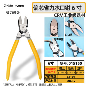 6寸偏心省力水口钳【适合铜线铝线铁线塑料扎带】【禁止剪切钢丝】