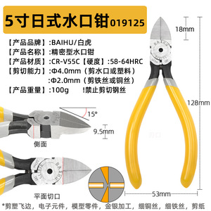 5寸日式水口钳【适合铜线铝线铁线塑料扎带】【禁止剪切钢丝】
