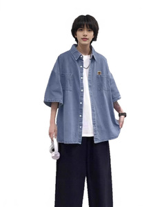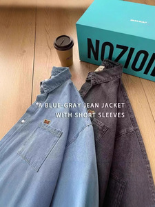 香港風和風デニムシャツメンズ半袖夏服ハンサムシャツサマージャケットトレンディなブランドデザインニッチ