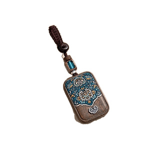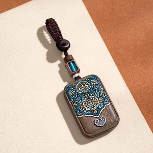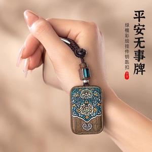 彩绘绿檀木平安无事牌汽车钥匙扣男女精致刻字挂件包挂饰吊坠国潮