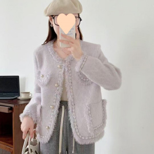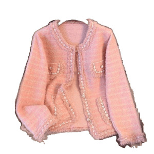 ジャケット、春の女性の模造ミンクニット2025ハイエンドの新しいスタイルの香りのセレブカーディガントップ