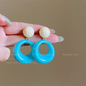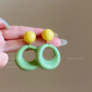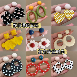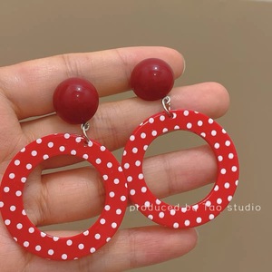 香港風誇張レトロイヤリング、遊び心のある女の子の赤い水玉模様のフープイヤリング、ドーパミンイヤリング、気質