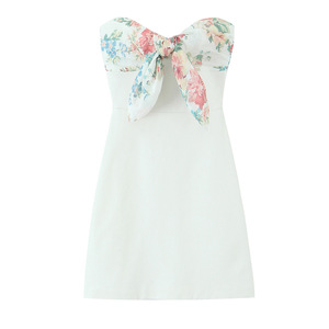 ZR外国貿易卸売り欧米風女装ファッションプリント薄いマフラー飾り短い胸ワンピース3067303