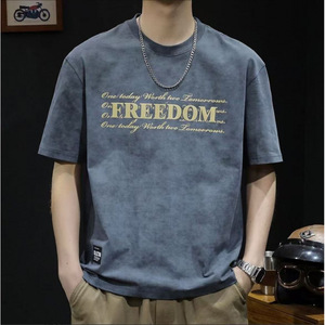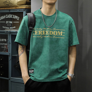 2025做旧扎染潮牌短袖T恤男士夏季新款宽松圆领大码休闲半袖潮流