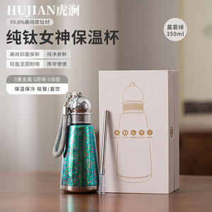 HUJIAN ヒュージアン チタンカップ 女神カップ 純チタン断熱カップ 高価値ガールズウォーターカップ ストローカップ ポータブルギフトカップ