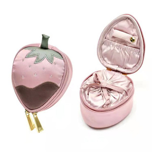 新しいクリエイティブなイチゴのジュエリーボックス、高価値のイヤリングとリングの収納バッグ、ポータブルでファッショナブルなジュエリー保護ボックス、耐摩耗性
