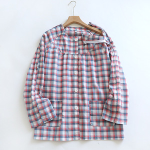 レディース赤と青のチェック柄薄手ナース服シングルトップ