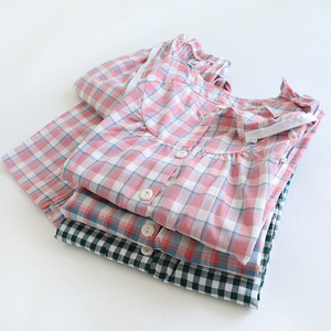 女性用ピンクチェック柄薄手ナース服ワンピーストップ