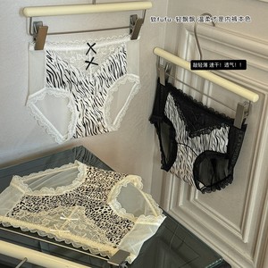 セクシーなヒョウ柄レースパンティー女性ミッドウエストダブルリボン茶通気性ポリフェノール延長クロッチ女性ブリーフ