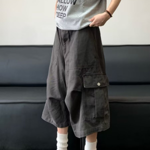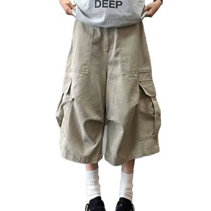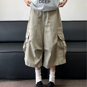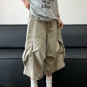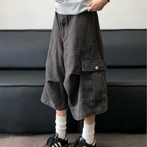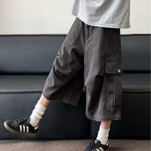 夏アメリカンワイドレッグストレートクロップドパンツメンズトレンディブランドデザインニッチルーズ大きいサイズカジュアルオーバーオール