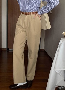 フランスのレトロなカーキ色のストレートスーツのズボンの女性の春と夏のハイウエストの韓国版はやせています。