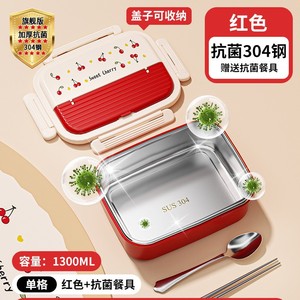 【厚手抗菌304スチール】シングルコンパートメント1300ml+食器+チェリー保温バッグ