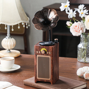 新しいレトロなトランペット花 Bluetooth スピーカーノスタルジックなクラシックホームラジオカードクリエイティブポータブル木目調オーディオ