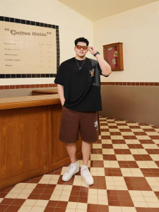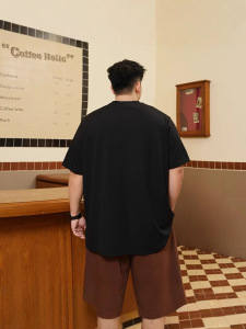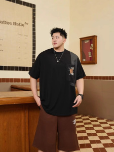 大码男装拼接短袖T恤宽松加肥加大胖子夏季潮流百搭半袖上衣体恤