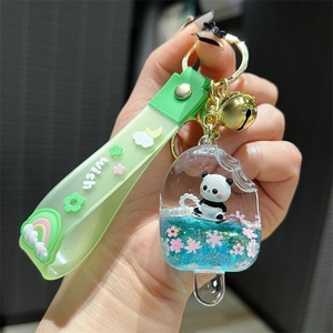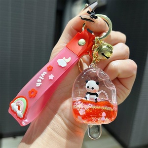 アクリルオイルアイスクリームパンダ流砂ボトルキーホルダーかわいいアイスキャンディーパンダフローティング人形ペンダント小さなギフト