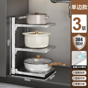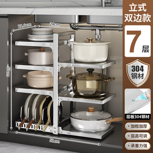 304不锈钢厨房置物架锅架多功能台面下水槽双边多层锅具收纳架