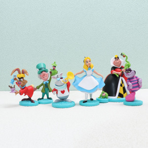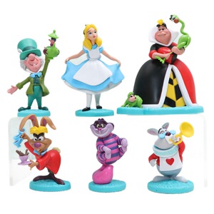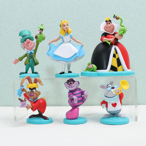 アリの不思議な国のアリスの6つのフィギュア、魔法の猫懐中時計、ウサギ、チェシャ猫のおもちゃ、人形モデルの装飾品