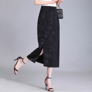 新しい中国風の香りの雲ガーゼスカート女性の夏の中国風ジャカードシルクワンステップスカート新しいハイウエストボタンチャイナドレススカート