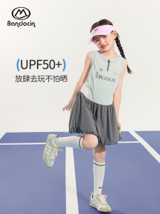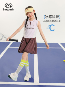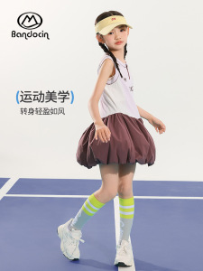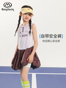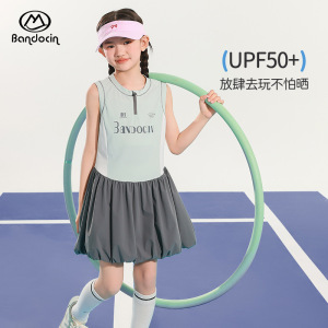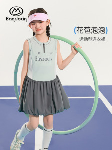半度の暇な女の子の運動の防走光のワンピース2025の新型の夏の薄い金の洋風の子供の少女の蓬のスカート