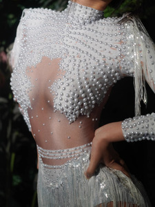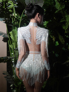 クロスボーダー女性の光沢のあるタッセルボディスーツラテンダンスウェアナイトクラブパフォーマンス服