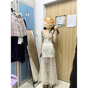 フレンチビーチリゾートスタイル立体フラワーサスペンダードレス夏の新しいウエスト痩身メッシュロングスカート女性用