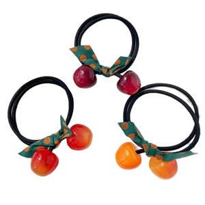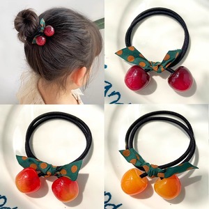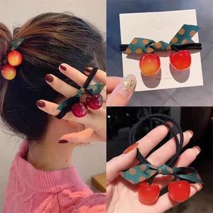 チェリーリボンヘアバンド、かわいいネット有名人のゴムバンドヘッドバンド、高弾性、シンプルな子供用フルーツヘアアクセサリー