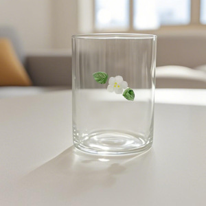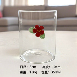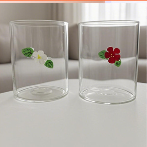 透かし彫りの小花柄ガラスカップ、高ホウケイ酸透明カップ、ティーカップ、中国風、ネット人気、シンプルなウォーターカップ、高級感、軽やかな贅沢スタイル
