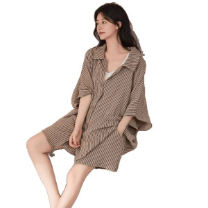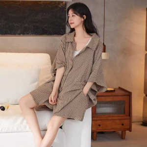 韩系睡衣女士夏季短袖中款衬衫两件套夏天薄款短裤休闲可外穿ins