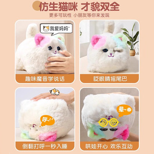 ハグニャー模擬猫ぬいぐるみ、話す、楽しい、リピート、しっぽ振り、かわいい子供のおもちゃ、誕生日プレゼント