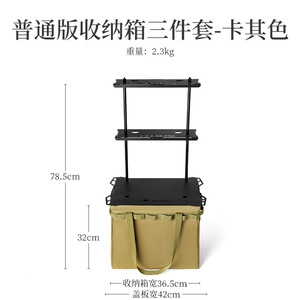 カーキオックスフォード布製収納ボックス + カバー + 単層収納トレイ
