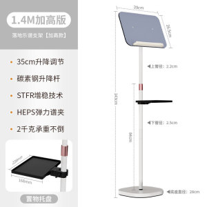 50-1.4M 床置き譜面台【ホワイト】+収納トレイ