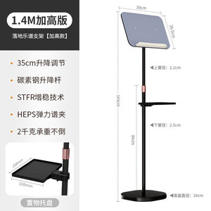 50-1.4M 床置き譜面台【ブラック】+収納トレイ
