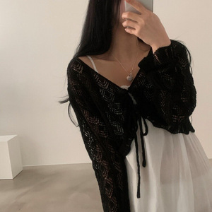 フレンチジェントルスタイルショール、中空かぎ針編みニットレースアップカーディガンジャケット、女性用、多用途でスタイリッシュで甘いトップス
