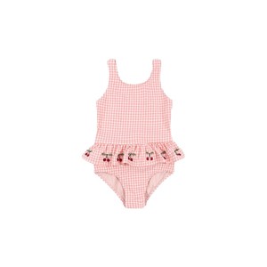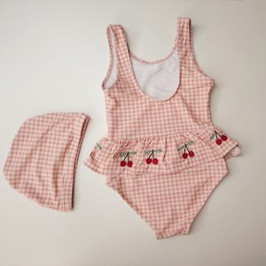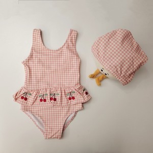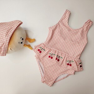 女の子ストラップワンピース水着2025夏新作ピンク格子チェリー北欧赤ちゃんプリンセス子供水着