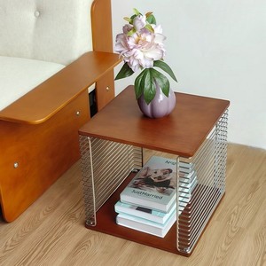 モジュラー北欧金属収納ラックアンティークスタイルステンレス鋼サイドテーブルコーヒーテーブル可動無垢材ソファサイドテーブル