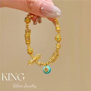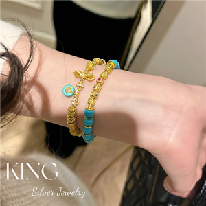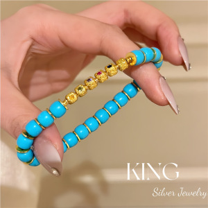 738 クラウドブルー S925 シルバー ゴールドメッキ人工美しい松レトロハイエンド高級スターリングシルバー ブレスレット
