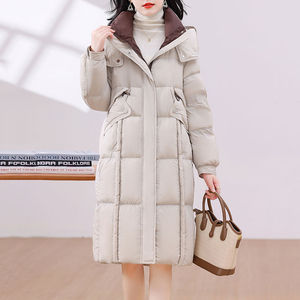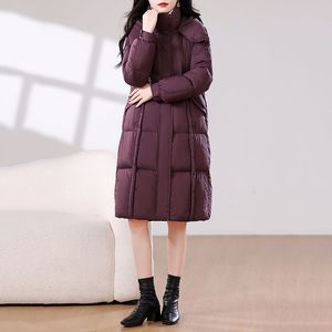 ダウンジャケット女性の 90 ホワイトダックダウンハイエンドライト高級厚く暖かい 2025 新しいフード付き冬ロングジャケット