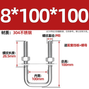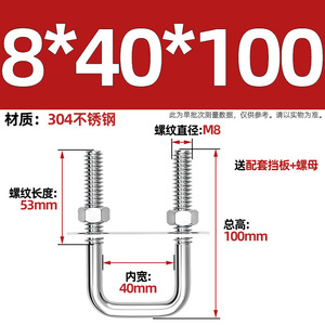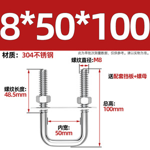 304 ステンレス鋼角型カード直角カード U 字型ボルト直角ネジ U 字型角型カードパイプカード角型パイプクランプパイプフープ
