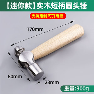 1276、【ミニモデル】無垢材短柄ボールピーンハンマー 0.3kg