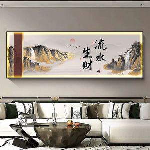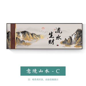 新中式海纳百川装饰画书房客厅沙发背景墙挂画山水画茶室壁画字画