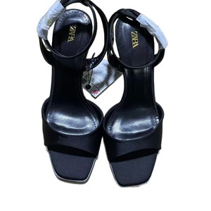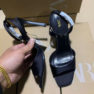 ZA2025新型スペインの黒い女性靴の経典の黒い漆の皮の露の指の1字の後でひもの超ハイヒールのサンダル