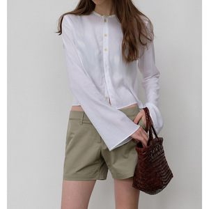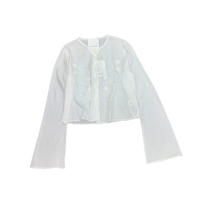 在庫あり KOK ヘビーデューティーライス植物刺繍レインリネン混微フレアショートシャツ