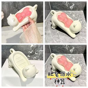 漫画猫プラスチック石鹸箱クリエイティブかわいい浴室石鹸箱収納ラック洗面台浴室排水