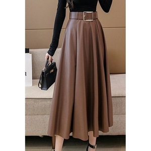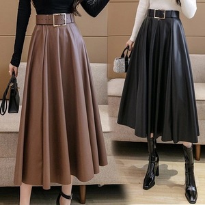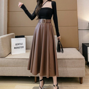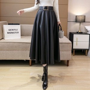 皮裙2025新款高腰百褶A字半身裙女春秋中长款包臀大摆长裙
