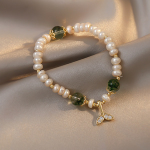 巴洛克淡水珍珠手链ins韩版时尚个性设计感气质鱼尾水晶手镯手饰