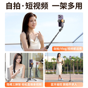 雲台安定器手ぶれ補正カメラ神器伸縮棒を持って一体三脚携帯電話bluetooth自撮り棒を持っている